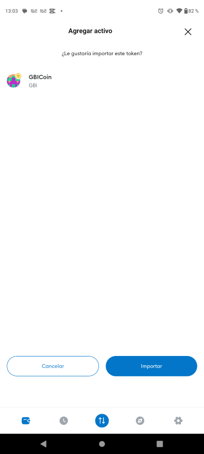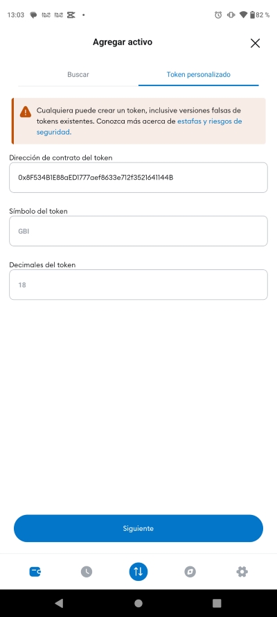 Ahora que aparecio listado el token GBICoin (GBI), le das siguiente