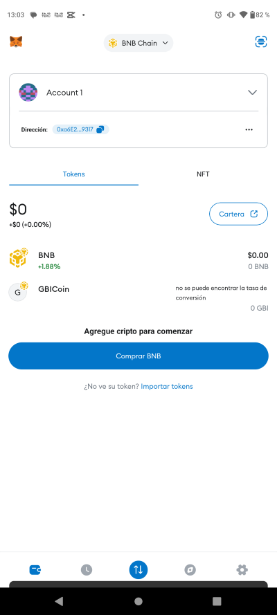 A continuación instrucciones para listar el token GBICoin (GBI) en la billetera descentralizada METAMASK