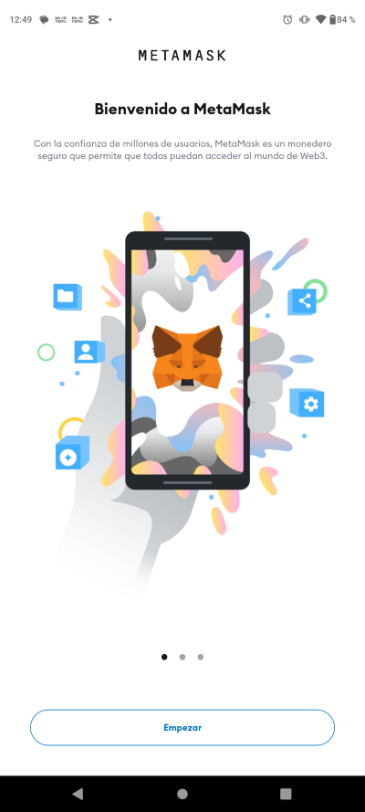 Descarga la aplicacion Metamask desde la PlayStore